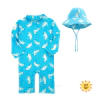 Macacão Praia Infantil Proteção Solar UV 50+ Manga Longa Com Chapéu